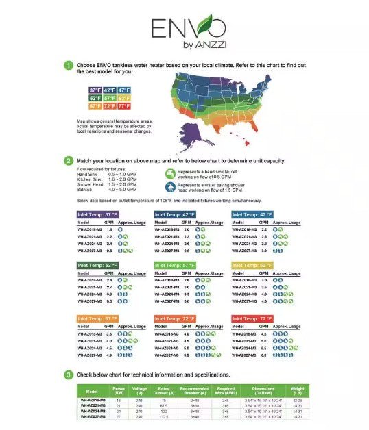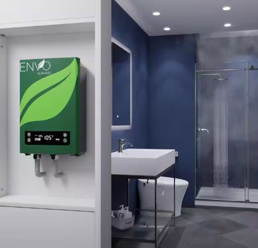 Upgrade your hot water supply with this Anzzi Envo Atami 4.8 GPM 27 kW Electric Tankless Water Heater. This unit heats water on demand so it uses less energy while giving you an endless flow of hot water. The compact design installs right where you need it, such as under the sink, in a vanity or in a closet.