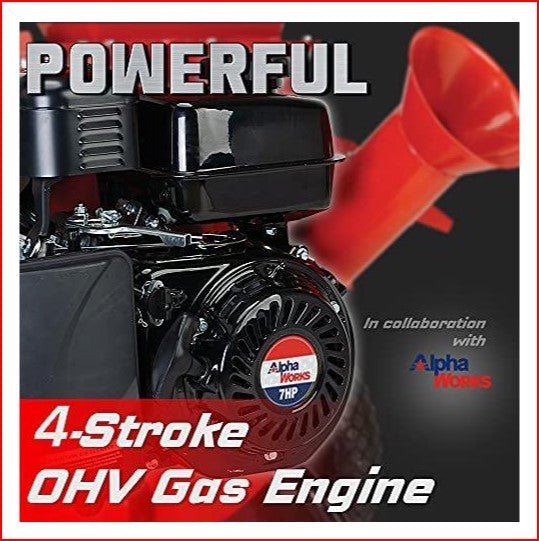 The 7HP 212CC Wood Chipper, Shredder and Mulcher for 3″ Branches, with a 15:1 reduction ratio and CR12MoV cutting blades, easily reduces branches and limbs up to 1/2″ and 3″ in diameter via the top and front chutes. It is powered by a 7HP horizontal 4-stroke engine and equipped with a side chute for larger branch feeding.