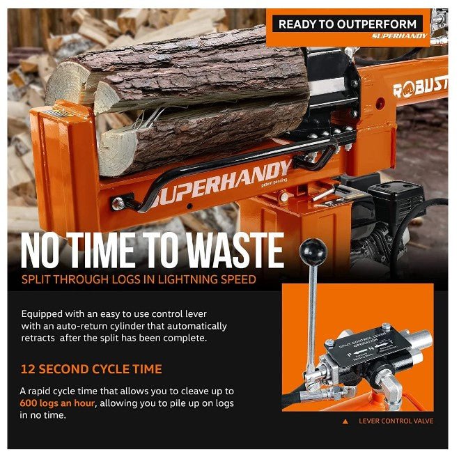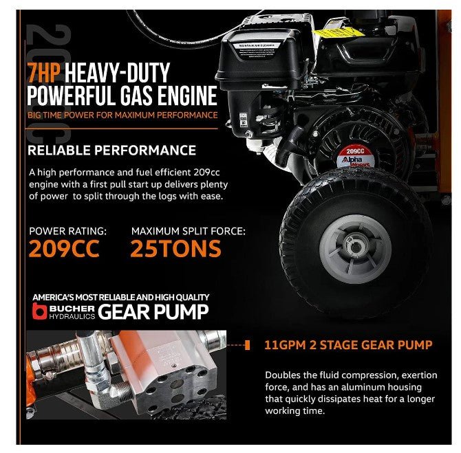 Super Handy Portable 25-Ton Gas Log Splitter. Tear through logs up to 20 inches in length and 16 inches in diameter! Get it done twice as fast with our Rapid Auto Return push-rod. Don’t take our word for it, see for yourself in the video above!